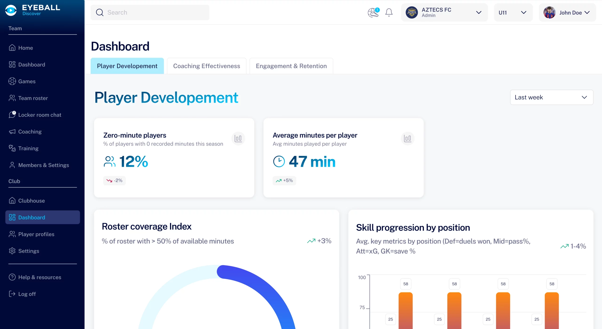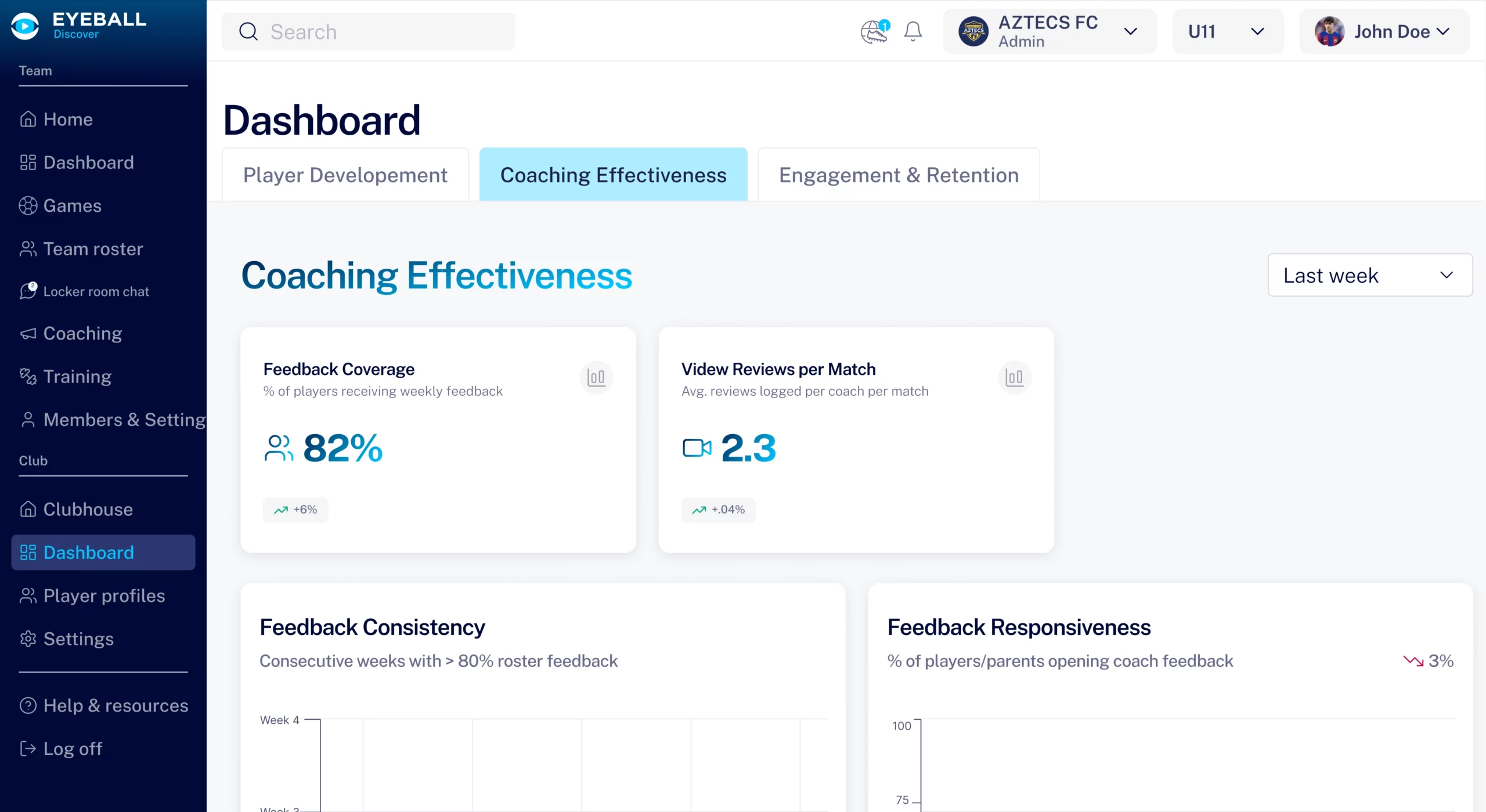 Track how consistent your coaches are in giving feedback and driving player growth.