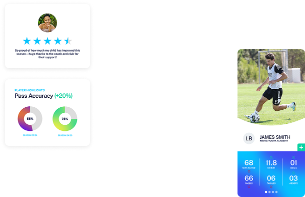 Everything lives in one intelligent ecosystem. Players, coaches, parents, and scouts connect through one platform — to watch, learn, share, and improve. The result: a more transparent, aligned, and empowered football experience.